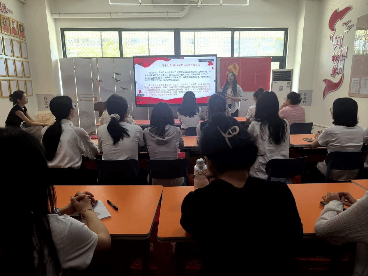 主题党日活动围绕“奏唱国歌”“重温誓词”“一些叮咛”“一次回顾”“一份祝福”“一场讨论”六项议程,以创新的形式,对毕业生党员进行了一场严肃而温馨的党性教育和爱国爱校教育。