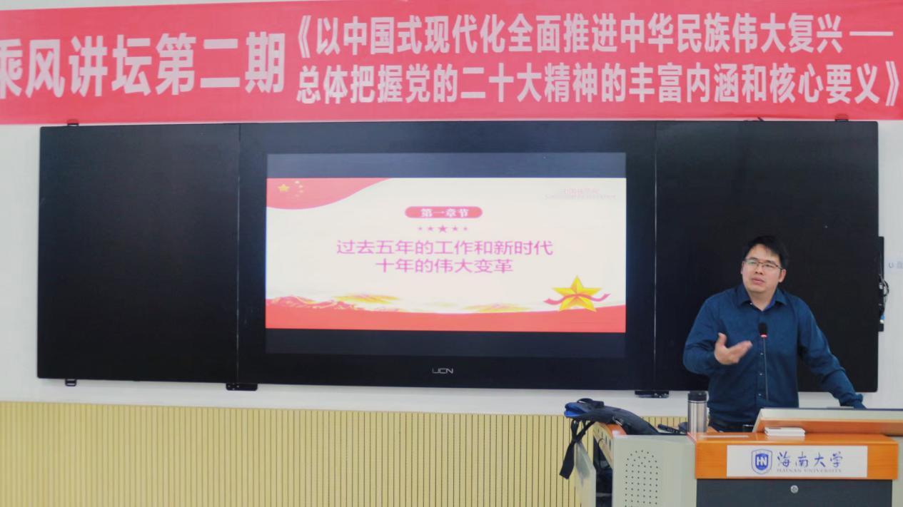 3月5日下午,乘风讲坛第二期开讲。永利官网经济学院教授、海南省社科院特聘研究员颜洪平,作题为“以中国式现代化全面推进中华民族伟大复兴——总体把握党的二十大精神的丰富内涵和核心要义“的讲座。讲座由永利集团88304官网辅导员宋鸽主持。
